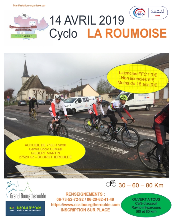 BOURGTHEROULDE D80 jusqu’au transfo D38 BOSC-ROGER en ROUMOIS, SAINT-OUEN-DU-TILLEUL, rue de Rouen, côte des 17 tournants, LA BOUILLE, côte de la Ronce, BARNEVILLE-sur-SEINE, moulin à vent de Crève-Cœur, Chemin des Côtes RAVITO, HAUVILLE, ROUTÔT, BOURNEVILLE, APPEVILLE-ANNEBAULT, Côte des Tennis, CATELON, EPREVILLE EN ROUMOIS, BERVILLE en ROUMOIS, BOURGTHEROULDE.
