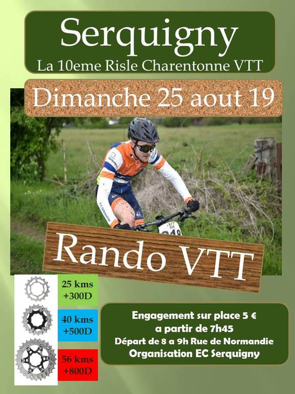 Vous avez été plus de 370 vététistes à participer à l’édition 2018. L’entente cycliste de Serquigny vous invite à la 10eme édition de la Risle Charentonne VTT