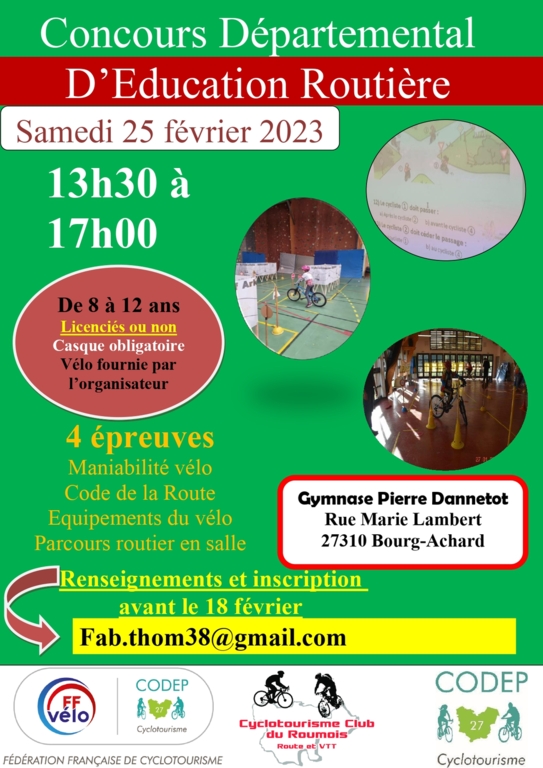 Les jeunes devront se présenter équipé de leur casque le jour du concours (pas besoin des vélos ils seront prêté par notre codep)