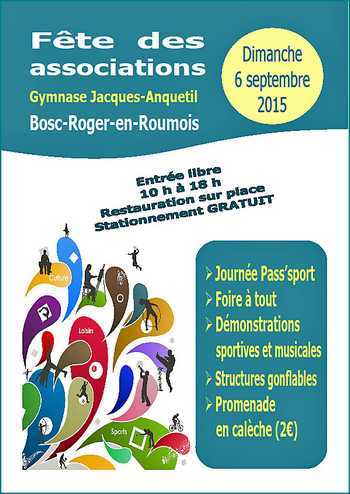Rendez-vous incontournable de la rentrée scolaire, sportive et culturelle, la Fête des associations de Bosc-Roger-en-Roumois se tiendra le dimanche 6 septembre 2015. Pour cette 8ème édition consécutive, la Fête des associations se déroulera au gymnase Jacques-Anquetil de Bosc-Roger-en-Roumois.